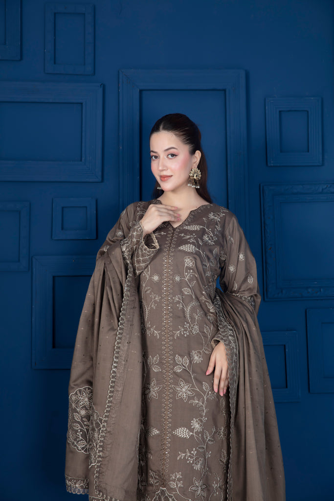 Duppatta Fabric: Premium Self Bindi Broshia viscose shawl with Pallu Embroidered Embroidery | 2.25 Meters