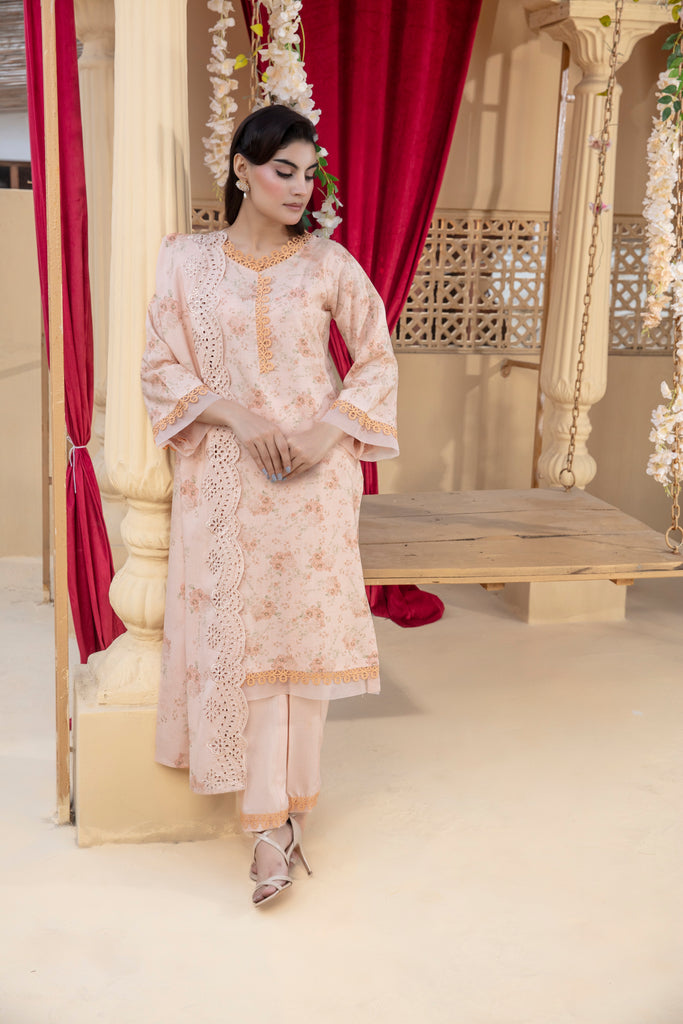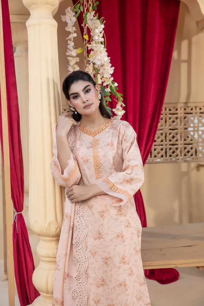 Dupatta Fabric: Digital Printed Dhanak Embroidered Dupatta | 2.25 Meters