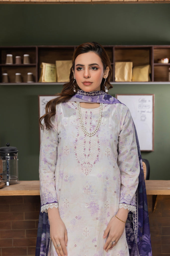 Shirt Fabric: Digital Printed Lawn Embroidered Shirt | 2.85 Meters