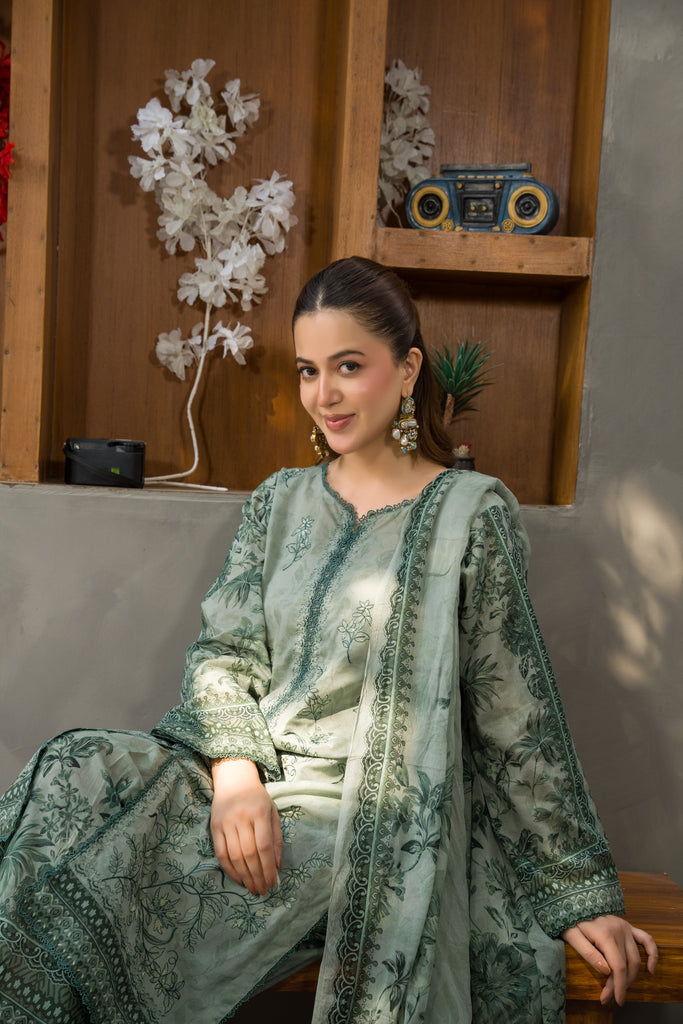 Shirt Fabric: Premium Digital Printed Lawn Embroidered Shirt | 2.85 Meters