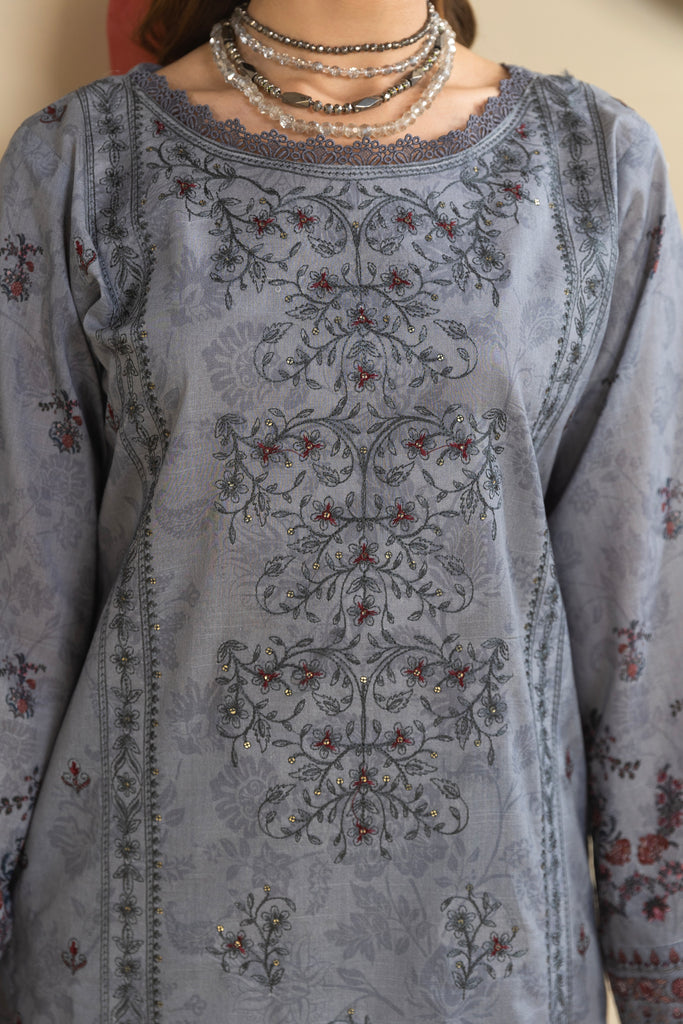 Shirt Fabric: Premium Digital Printed Lawn Slub Shirt with Embroidery | 2.85 Meters