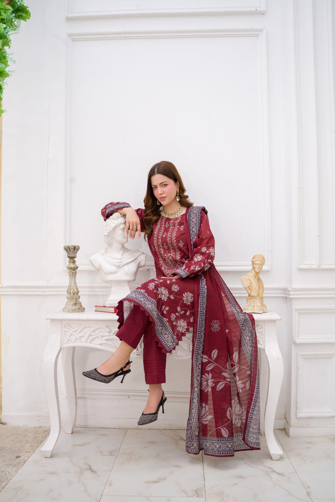 Shirt Fabric: Premium Lawn Digital Printed Shirt With Embroiderey | 2.85 Meters