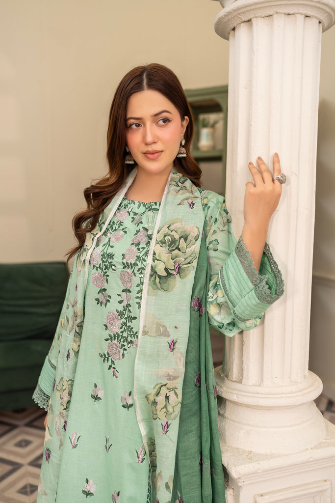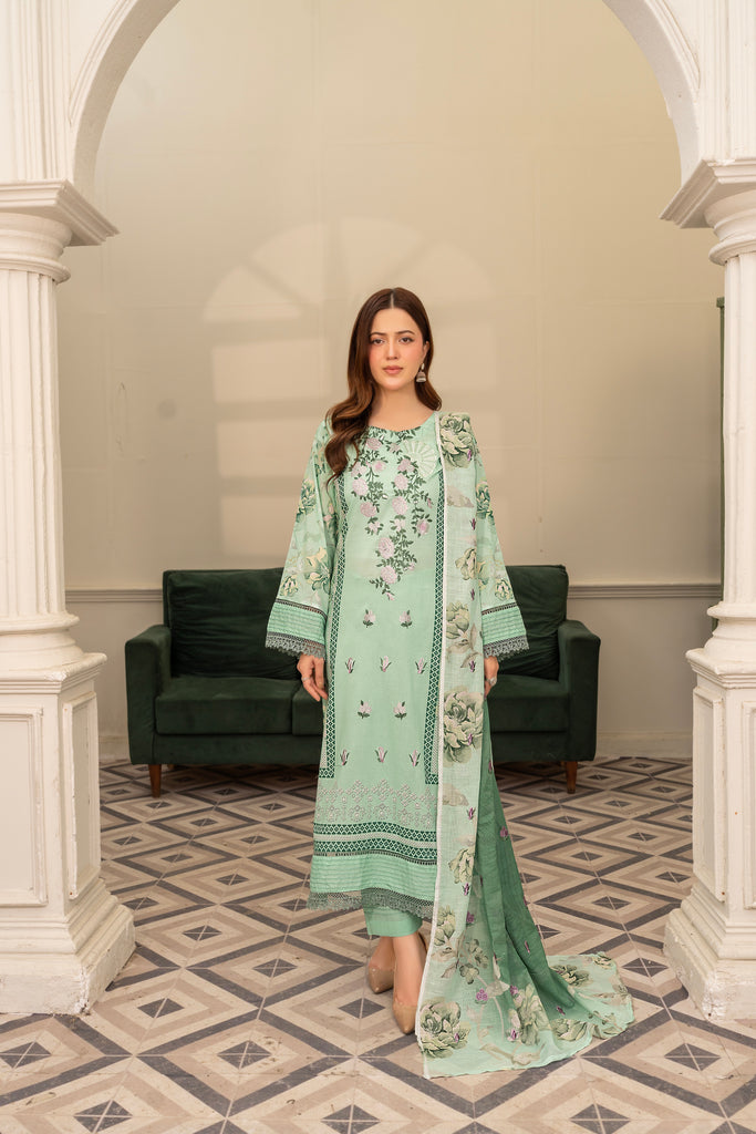 Shirt Fabric: Premium Digital Printed Lawn Embroidered Shirt | 2.85 Meters