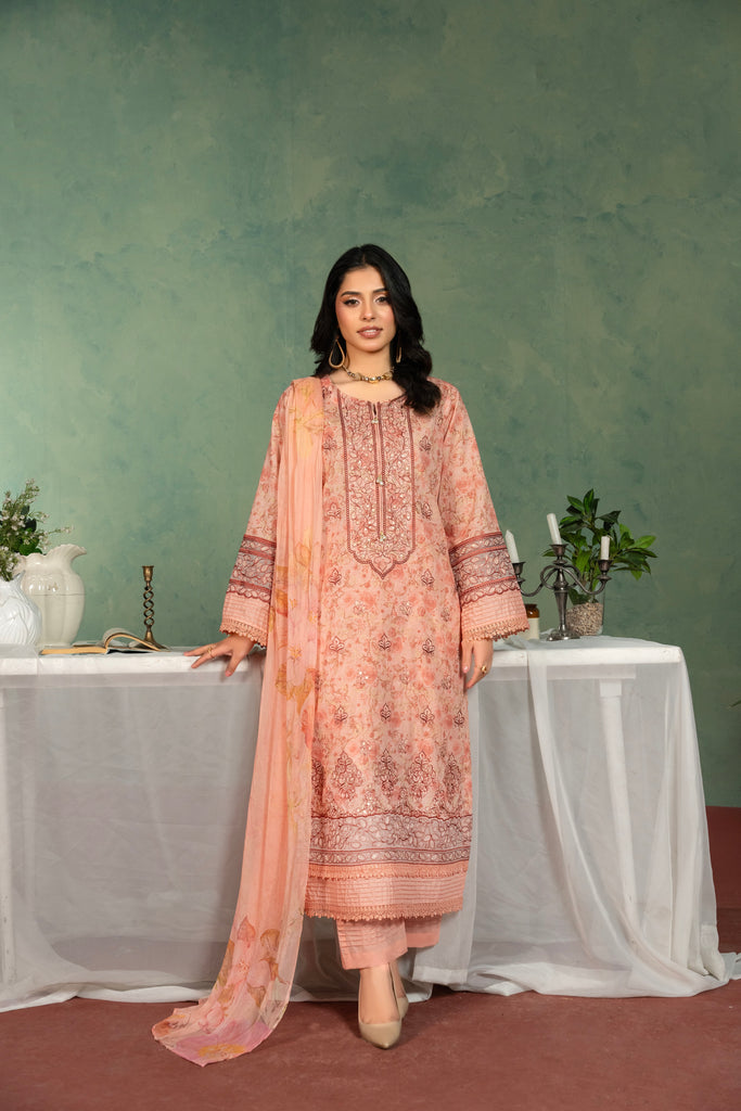 Shirt Fabric: Premium Lawn Self Doria Embroidered Shirt With Daman Embroidered Patch | 2.85 Meters