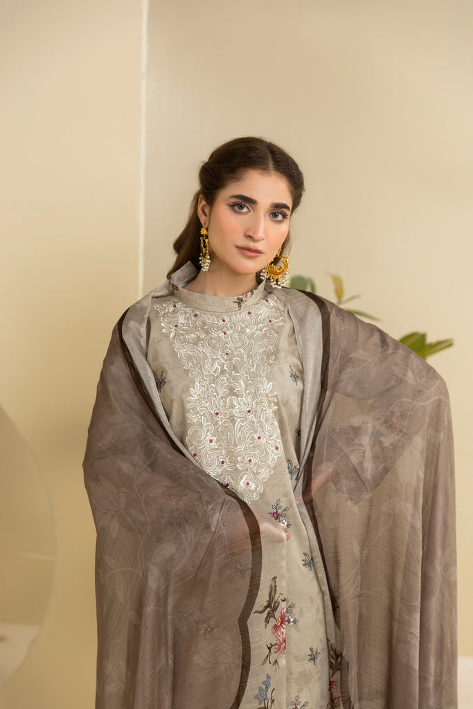 Shirt Fabric: Premium Digital Printed Lawn Slub Shirt with Embroidery | 2.85 Meters