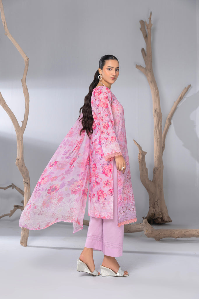 Shirt Fabric: Digital Printed Bana Dora Lawn Front Embroidered Shirt with Extra Embroidered Patch| 2.85 Meters