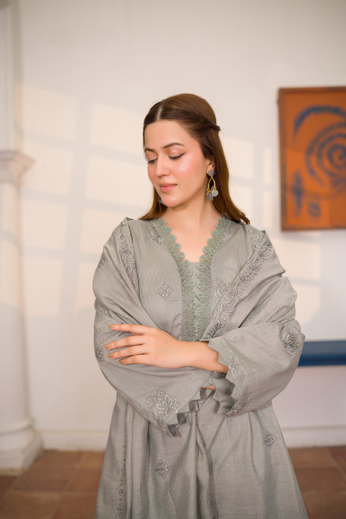 Dupatta Fabric: Premium Voil Self Dupatta With Full Embroidered | 2.25 Meters